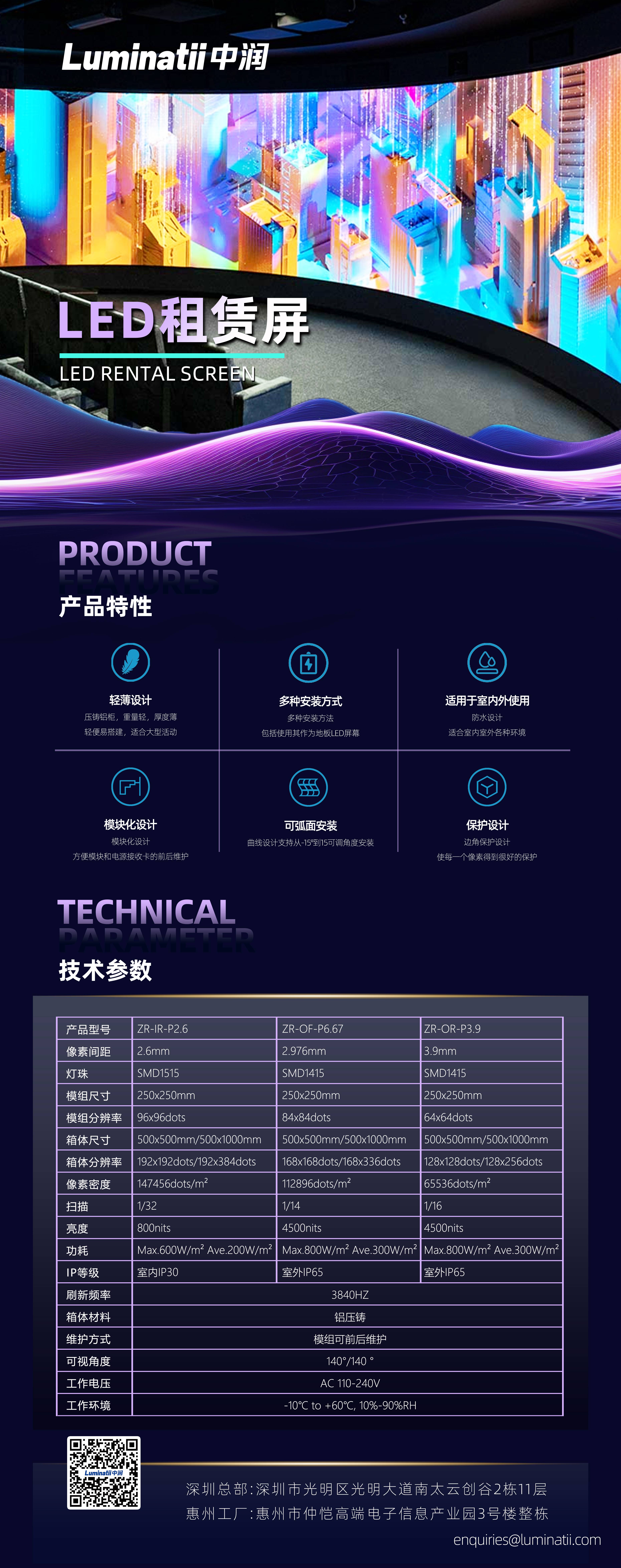- LED租赁屏,轻便易搭建,适合大型活动。